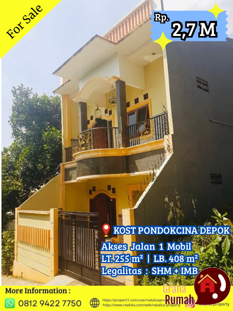 – Dekat ke Jalan Margonda Raya, Juanda & Kelapa Dua Depok.Harga : Rp. 2,7 M (Nego), Kami siap bantu proses KPR nya.