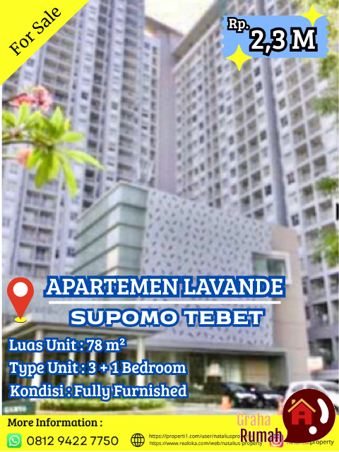 Jual Apartemen Lavande Supomo Tebet Siap Huni.