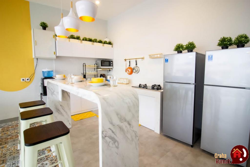 10. Dapur lengkap dengan Kulkas, Microwave dan Peralatan Masak lainnya