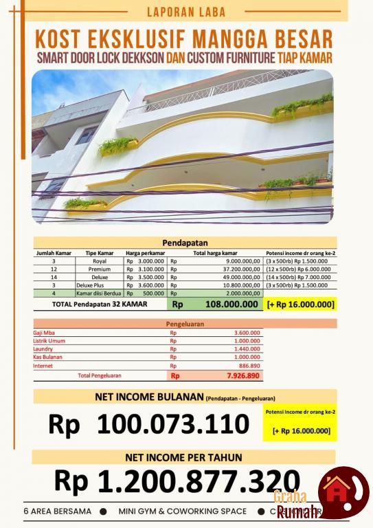 -PLUS Potensi tambahan Income Rp 14.000.000 jika Kamar dihuni berdua (28 x 500rb).