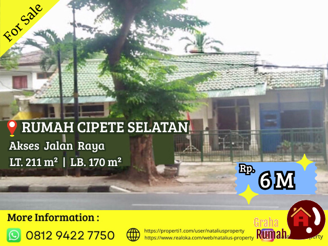 Jual Rumah di Cipete Selatan, Hadap Timur, Akses Jalan Raya. Peruntukan sangat Cocok dibangun Ruko untuk Kantor, Ruang Usaha, Kantor Jasa Ekspedisi / Kurir, Klinik, Cafe & Resto.