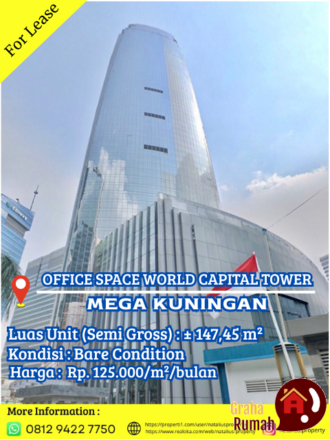 Disewakan Office Space World Capital Tower Mega Kuningan Luas 148m2 Lokasi Kawasan Pusat CBD